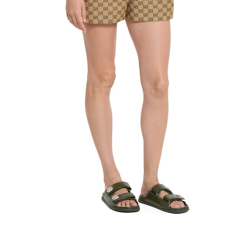 Realizzati in pelle, questi sandali presentano l'inconfondibile dettaglio Doppia G in metallo color oro chiaro impreziosito da scintillanti cristalli, per un tocco di raffinata eleganza.
