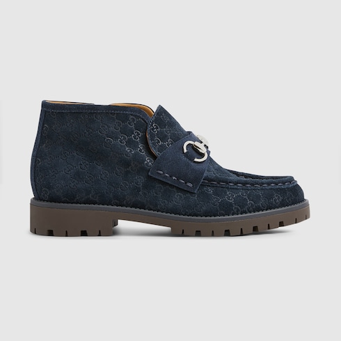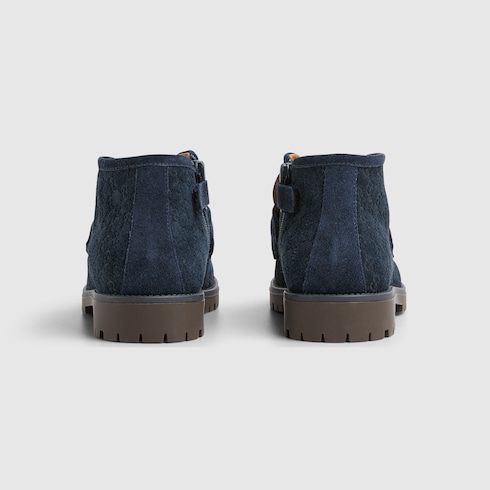 From subtle embroideries to allover prints, signature motifs continue to enrich the Pre-Fall 2025 children's selection. These children's ankle boots are presented in GG suede and defined by a silver-toned Horsebit detail.