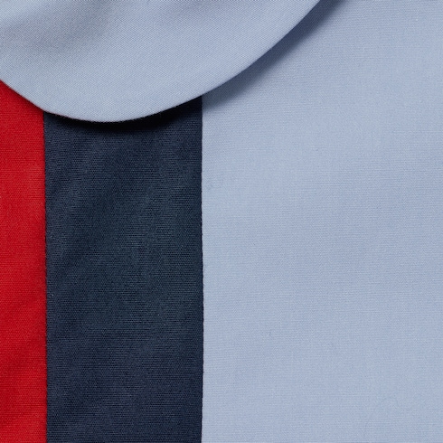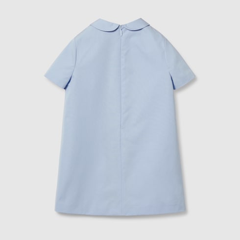 Архивная полоса Web представлена в детской коллекции Cruise 2025 в различных вариациях. Красно-синяя отделка на предметах одежды, обуви и аксессуарах создает спортивное настроение для любого приключения. Это платье для детей 3–12 лет выполнено из плотного хлопкового поплина и дополнено вертикальной красно-синей полосой Web.