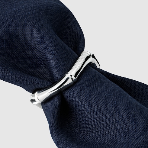 The House's Decor collection continues to reinterpret emblematic motifs, from the GG, Web, bamboo, Horsebit and equestrian inspirations, in sumptuous materials, intricate craftsmanship, and fresh hues. This stainless steel napkin holder has been crafted in the shape of the instantly-recognizable Bamboo motif, further enriched with an engraved Gucci logo.