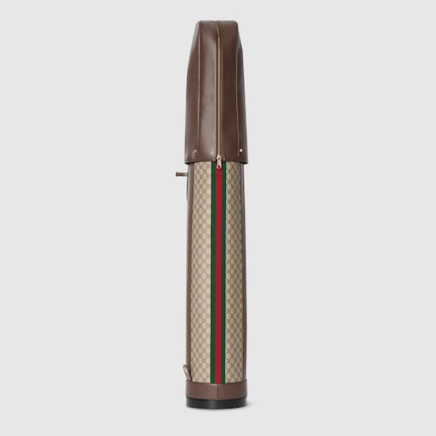 Gucci expands its lifestyle collection to the world of golf. This golf bag is characterized by the GG Monogram coated fabric, Web stripe and leather trim. It can be carried by hand or worn on the shoulder with the padded strap.