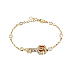 As a concluding chapter to the story of leaving behind fashion’s old rules, the Epilogue collection is comprised of pieces that experiment with the concept of time. Taking a contemporary approach to an antiques-inspired design is this crystal encrusted bracelet with a pendant in the shape of a barrel key defined by a Double G head.