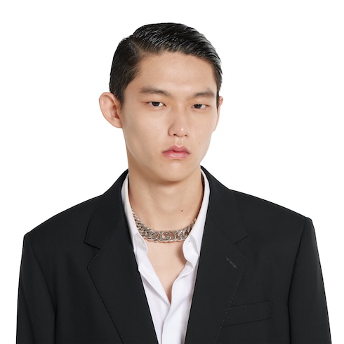 Линия бижутерии Gucci Interlocking представляет узнаваемый символ в виде функциональной магнитной застежки. Это колье-цепочка плетения «гурмет» дополнено переплетенными буквами G, которые открываются и делают модель удобной.