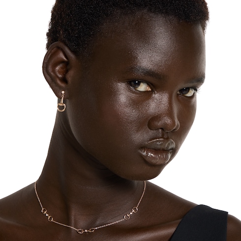 An extension of the Horsebit range includes eye-catching diamonds across a selection of rose gold jewelry pieces. This pair of earrings displays the equestrian-inspired motif as a half-Horsebit detail.