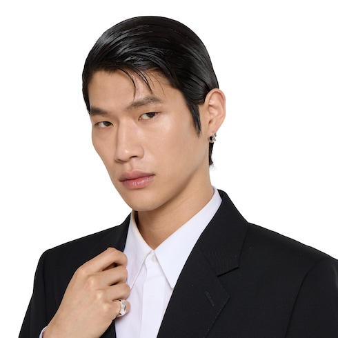 The new Gucci Chiodo line is a modern reinterpretation of the House's equestrian heritage, taking inspiration from the horseshoe tack. The bold design forms rings and earrings, each engraved with the Gucci logo.