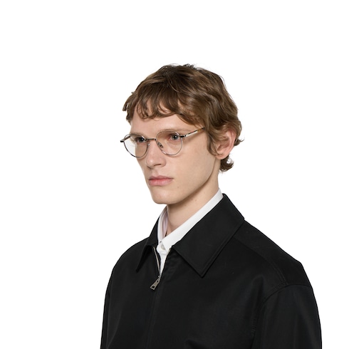 The Pre-Fall 2025 eyewear collection presents sleek silhouettes with the signature Web stripe at the temples. This round optical frame is stated in silver-toned metal with a Web detail, engraved Gucci logo and tortoiseshell endtips.