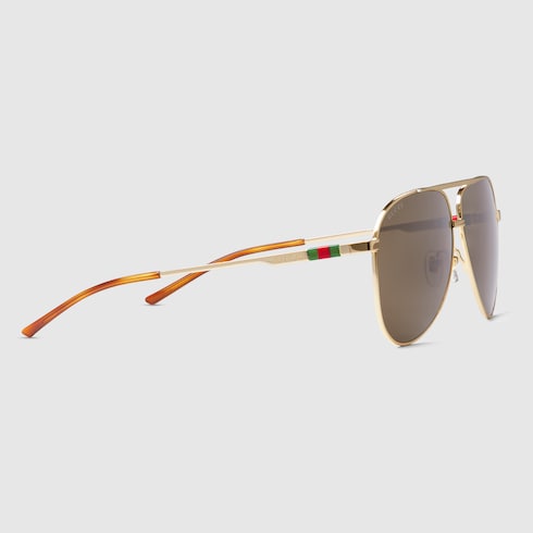 - Заушники из блестящего металла золотистого цвета с наконечниками из ацетата черепаховой расцветки, полосой Web и логотипом Gucci