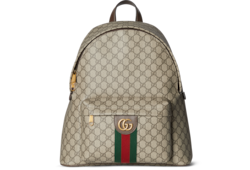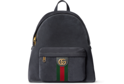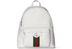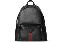 Ophidia in black features sophisticated leather, elevating signature silhouettes with new functions. This backpack is presented in a soft leather with natural shine and is defined by a Double G and a Web detail.