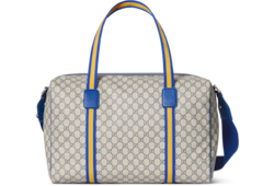 От кроссовок Gucci Tennis 1970-х годов до настоящего времени Дом продолжает выражать свою связь с миром спорта через фирменные модели с акцентом на наследии и инновациях. Эта универсальная и функциональная сумка-дафл выполнена из белого текстиля GG Supreme Tender.