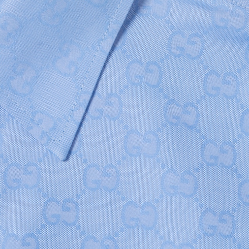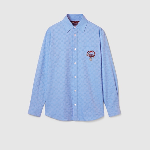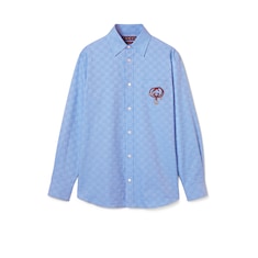 Equestrain symbols embellish signature silhouettes with a vibrant touch. Crafted from GG Oxford cotton, this shirt is enriched with a Web Interlocking G and stirrup embroidery.