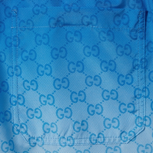 Gradient colors are meticulously created to bring out the texture of the materials and the recognizable GG motif. Crafted from gradient blue technical poplin, this pair of swim shorts features an allover GG print.