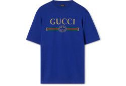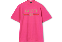 Introducing Spring Summer 2026. This style is inspired by the "Nerd" look of La Famiglia. The collection reinterprets the House’s codes through singular personalities and distinctive aesthetic attitudes. Crafted from silk blend jersey, this T-shirt is enriched with a Gucci Web with Interlocking G print.