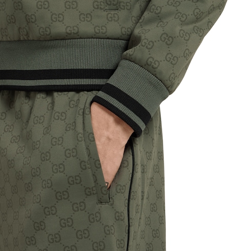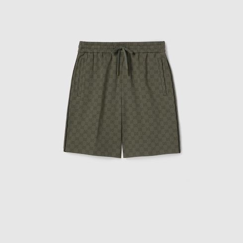 Pre-Fall 2025 pieces in muted black, grey and green tones spotlight delicate floral embroideries, embossed logos, and more craftsmanship details. Crafted from GG jersey jacquard, this pair of shorts s is finished with refined piping and a comfortable elastic waistband.