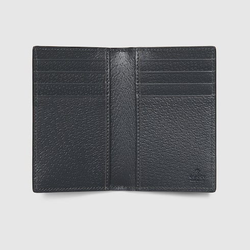 Тонкие и компактные небольшие кожаные аксессуары из новых коллекций представлены в новых оттенках с логотипом GG в двухцветном исполнении. Этот удлиненный чехол для карт с восемью прорезями для карт выполнен из текстиля GG Supreme черного цвета, а внутренняя часть выполнена из гладкой кожи серого цвета.