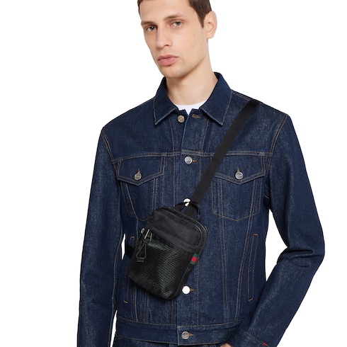 The lightweight and durable GG nylon material is re-introduced on new functions and bold shades. It appears here across with a tonal Gucci logo, defined by a green and red Web detail.
