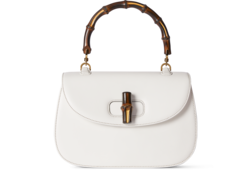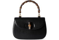Introducing Spring Summer 2026. This Gucci Bamboo 1947 is featured in the "Ereditiera" look of La Famiglia. Crafted from precious leather, it has a unique tactility and appearance, achieved through a meticulous hand-polishing process which brings out the texture. The new construction features slim gussets and an innovative closure mechanism which clicks open and close in two positions.