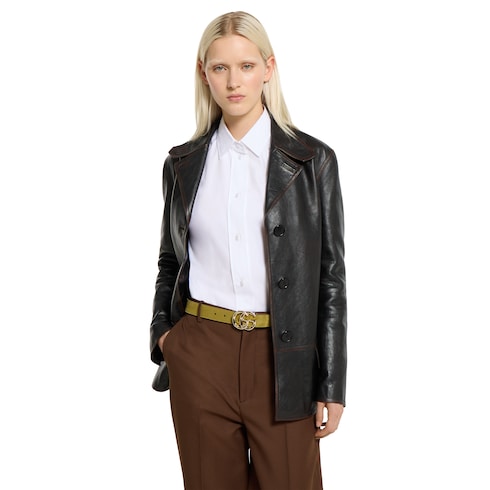 In the Fall Winter 2025 collection, the instantly-recognizable GG Marmont explores fresh interpretations. Here, this suede belt is defined by a bamboo-shaped Double G buckle.