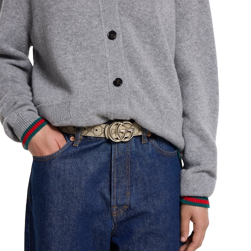 In the Fall Winter 2025 collection, the instantly-recognizable GG Marmont explores fresh interpretations. Here, this reversible belt is presented in GG Supreme and leather, further defined by a Double G buckle.