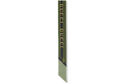 In the Fall Winter 2025 collection, the House celebrates its equestrian roots, including this silk ribbon with an allover Gucci belts and Horsebit print.