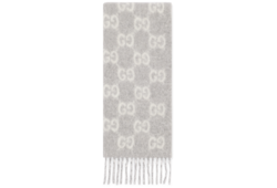 The Cruise 2026 women's soft accessories collection explores fresh interpretations of emblematic motifs. Knit from an alpaca blend, this scarf reveals a GG pattern.