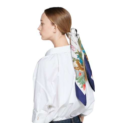 Featuring artwork by artist Sara Leghissa, whose oeuvre questions and deepens the connection to reality, this carré explores Gucci's motif around nature as part of the 90 x 90 project.