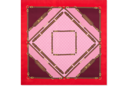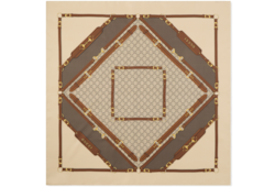 In the Fall Winter 2025 collection, the House celebrates its roots, including this silk carré with an allover Gucci belts and Horsebit print.