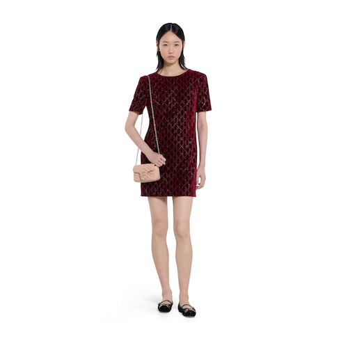 The GG Marmont introduces mini silhouettes in a fresh palette, such as this mini shoulder bag in pink beige matelassé chevron leather, complete with the Double G hardware in a light gold-toned finish.