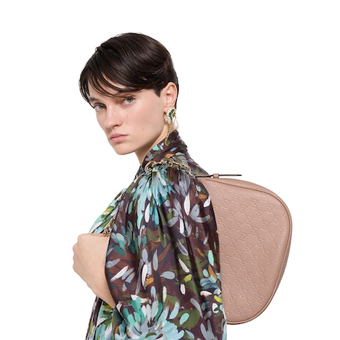The GG Emblem collection reinterprets the House’s heritage of elegance and craftsmanship. This shoulder bag is crafted from embossed GG leather and completed with a chain strap.