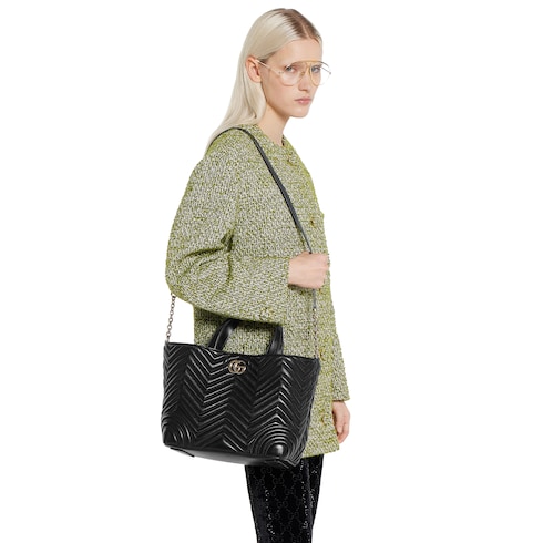 Gucci Betty adds a touch of spontaneity to refined design, which can change from a structured tote to soft-shaped bucket. The style is completed with top handles and a chain shoulder strap, offering versatile styling options.