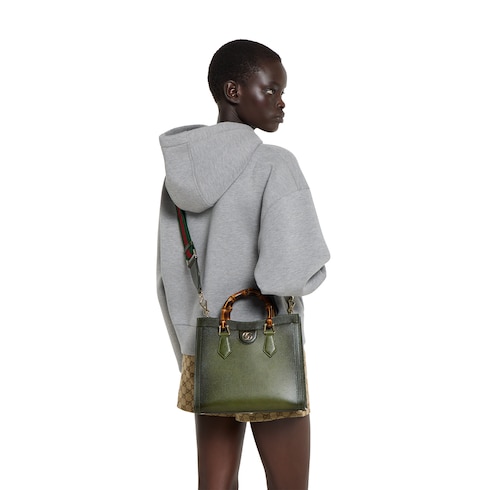 The Gucci Diana tote bag is defined by bamboo handles and Double G hardware. This style features the House’s signature elements on a backdrop of gradient-colored leather, complete with two straps, one leather and one Web canvas.