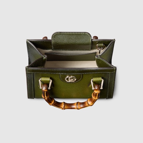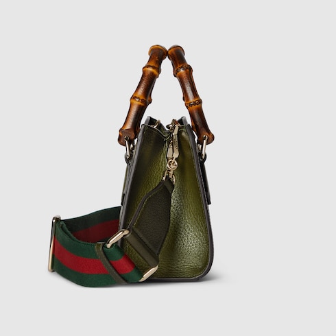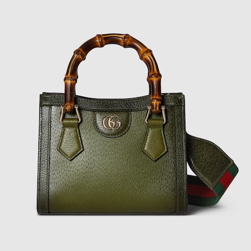 In the Pre-Fall 2025 collection, Gucci Diana, one of the House's signature collections, is introduced in gradient colored grainy leather, complete with its bamboo handle. The tote bag style can also be worn crossbody or over the shoulder.