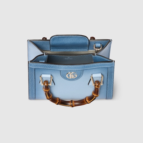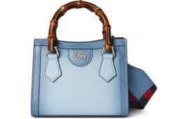 In the Pre-Fall 2025 collection, Gucci Diana, one of the House's signature collections, is introduced in gradient colored grainy leather, complete with its bamboo handle. The tote bag style can also be worn crossbody or over the shoulder.