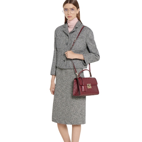 In the Fall Winter 2025 collection, the Padlock introduces contemporary silhouettes that offer many wearabilities. The top handle bag is crafted from embossed GG leather.