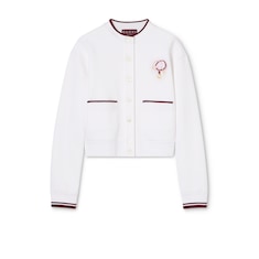 Equestrian symbols embellish signature silhouettes with a vibrant touch. Crafted from cotton jersey, this cardigan is defined by a Web Interlocking G and stirrup embroidery.