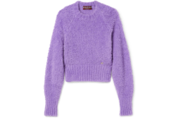 The Cruise 2026 women's ready-to-wear collection highlights sumptuous materials on essential silhouettes to usher in the colder season. This crewneck sweater is crafted from purple brushed wool mohair blend and finished with an Interlocking G metal detail.