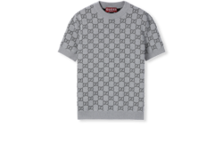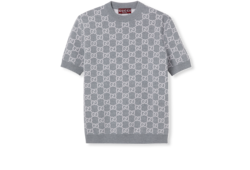 Орнамент GG предстал в неожиданных оттенках и сочетаниях материалов, от смесового льна до нейлона. Этот двусторонний топ с круглым вырезом выполнен из тонкой шерсти с жаккардовым орнаментом GG и инвертированными цветами на обратной стороне.