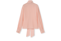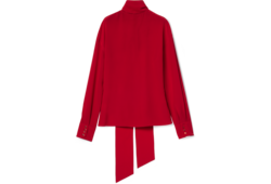 In the Fall Winter 2025 collection, this long-sleeved blouse is crafted from crêpe de chine and defined by a scarf-tie neckline. The softly structured silhouette features dropped shoulders and buttoned cuffs.