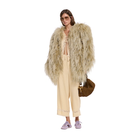 Lace is a recurring element of the Cruise 2026 collection, as one of the most feminine of materials. Crafted from diagonal GG silk jacquard, this shirt is defined by a delicate lace trim and a self-tie bow.