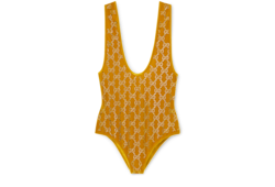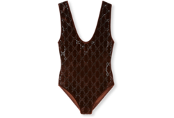 The Cruise 2026 women's ready-to-wear collection highlights sumptuous materials on essential silhouettes to usher in the festive season. Crafted from viscose chenille, this bodysuit is enriched with GG crystals.