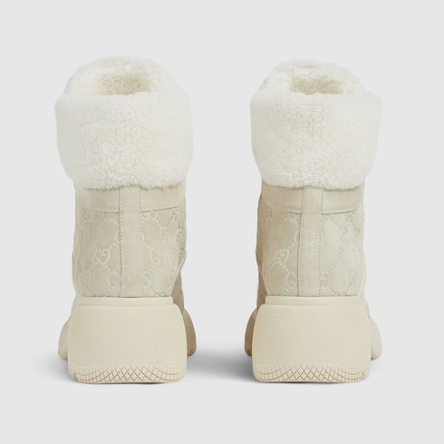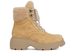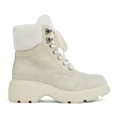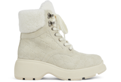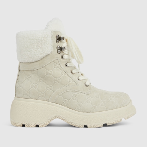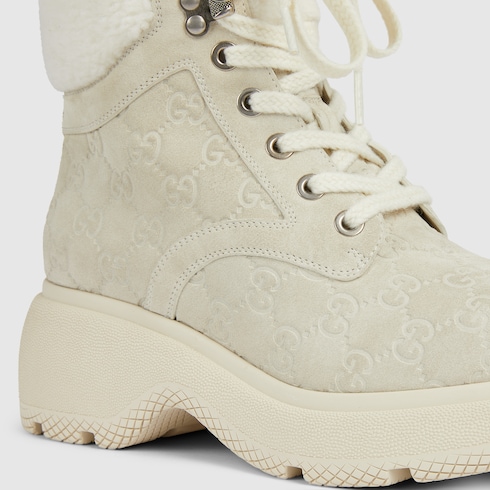 Inspired by mountain hikes, this women's lace-up boot blends functionality with iconic style. Crafted from GG suede and lined with plush merino wool, the design offers a unique take on outdoorwear.