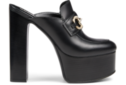A nod to the House's equestrian past, the Horsebit has become both a historical and contemporary emblem throughout the years. Here, it defines this women's platform mule crafted in supple leather.