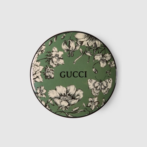 ポーセリン アイテムを飾るグリーン&アイボリーのフローラ モチーフ。自然界をインスピレーション源とするプリントには、手描きのスケッチ画のような雰囲気が漂います。ここではその繊細なパターンをグリーン&アイボリーのポーセリン製アクセサリーボックスにあしらいました。同プリント蓋つきです。