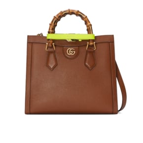 バンブー ハンドルのトートバッグは、1990年代初頭に初めて登場し、その時代を映し出しました。グッチのデザインを貫く進化と再発見のストーリーに基づいて再解釈されたバッグには、当初ハンドルのフォルムをキープするための付属品だった機能的なバンドをアレンジした、ネオンカラーのレザーベルトをあしらいました。