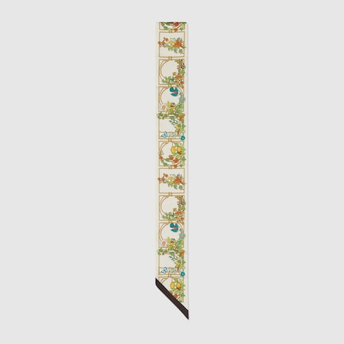 Les motifs emblématiques de la Maison se parent d’imprimés originaux et audacieux. Ce ruban est orné d’un imprimé fleuri et animaux, illustrant les emprunts de Gucci à la nature.
