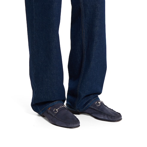 One of the House's most signature styles, the Gigi loafer is presented here crafted in refined and soft suede. The lightweight material is easily foldable, ensuring maximum comfort. The classic Horsebit hardware that defines the style acts like a tribute to Gucci's heritage.