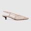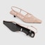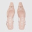 Estos zapatos con talón descubierto se han fabricado en red beige rosado. El modelo presenta una nueva idea de feminidad con detalles glamurosos, como el encaje, los cristales y los tejidos transparentes.
