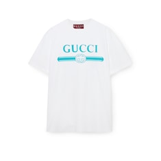 For the Pre-fall 2025 collection, everyday pieces are elevated with prints or embroideries for a casual feel. This T-shirt features a Gucci Interlocking G and Web print on the front.