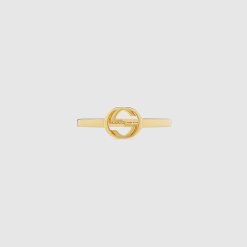 The Interlocking G, an archival emblem dating back to the '60s appears as a subtle design detail on this 18k yellow gold ring. House symbols are reimagined throughout Gucci Aria in celebration of both the past and present.
