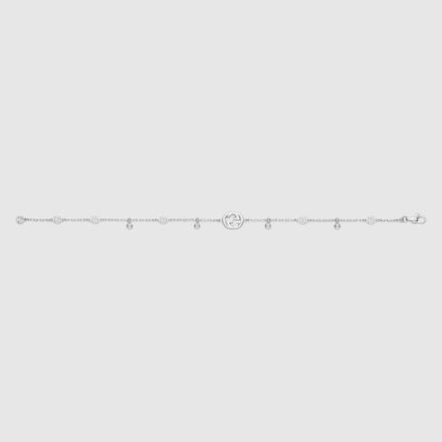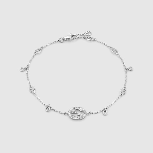 The Gucci Interlocking jewellery collection takes a cue from the geometric logo, resulting in this design. Sparkling with Interlocking G details and set with diamonds, the 18k white gold bracelet is ideal for everyday wear.