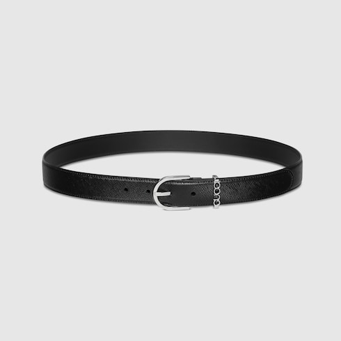 The House continues to reinterpret emblematic motifs, from the GG, Web, Flora, bamboo, Horsebit and equestrian inspirations, in sumptuous materials, intricate craftsmanship, and fresh hues. This leather belt is defined by a stirrup buckle and reveals a Gucci logo detail across the belt loop.